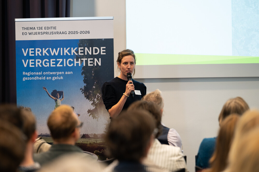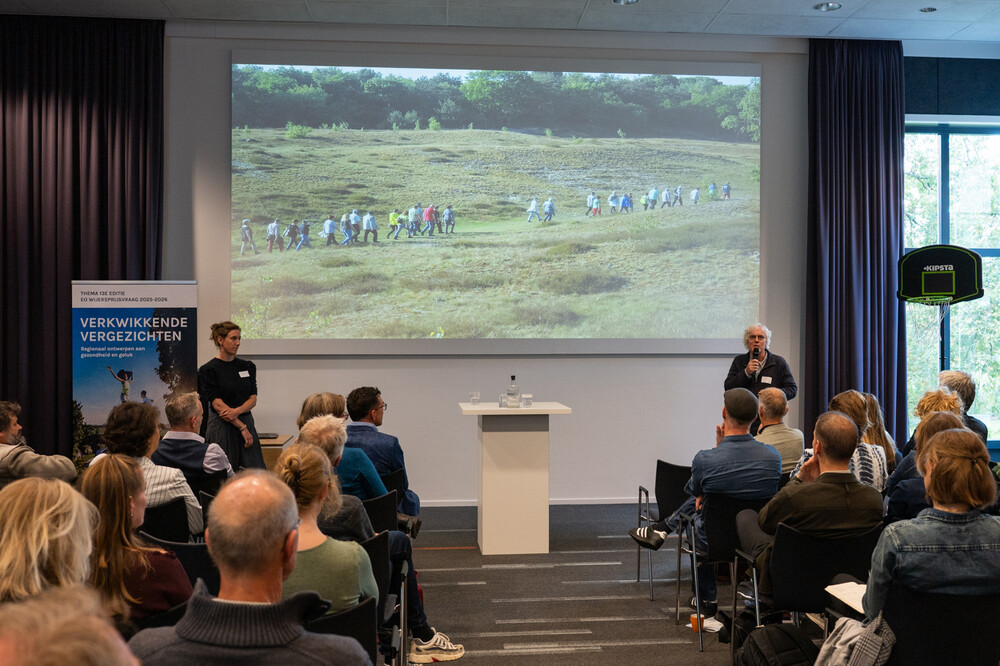 We hopen dat veel ontwerpers gaan kiezen om aan de slag te gaan met onze ambitie: Een bloeizone zijn in 2050. Een ‘bloeizone’ is een regio waar mensen opvallend lang en gezond leven, dankzij hun voeding, sociale samenhang en levensstijl. Dat sluit naadloos aan bij het thema van deze 13e editie van de Eo Wijers Prijsvraag. Voor ontwerpers is het een verfrissende uitdaging om landschap en ruimtelijke ordering in te zetten voor gezondheid en geluk. Zij kunnen hun creativiteit en kunde inzetten om te laten zien hoe juist hier een gezonde leefomgeving kan ontstaan. Waar stikstofreductie, klimaatadaptatie en natuurherstel hand in hand gaan met toekomstbestendige landbouw en leefkwaliteit voor inwoners. Een goed ontwerp draagt bij aan een landschap dat niet alleen duurzaam is, maar ook uitnodigt tot bewegen en ontmoeten.